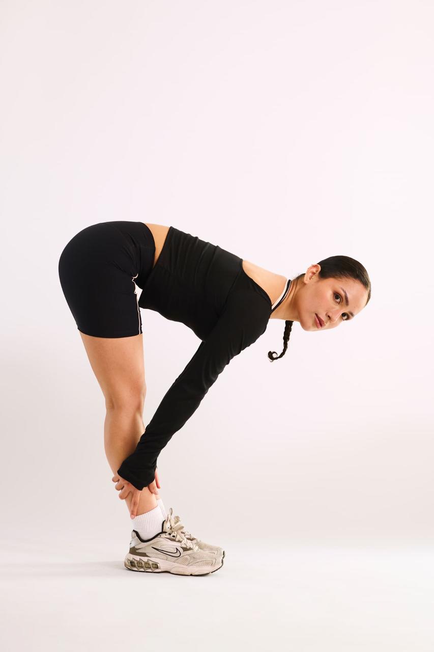 Blusa ligera de manga larga con abertura en el pulgar y diseño que muestra los hombros. Tela extra suave, perfecta para usar antes o después de yoga o entrenamiento. Combina comodidad, elegancia y versatilidad.