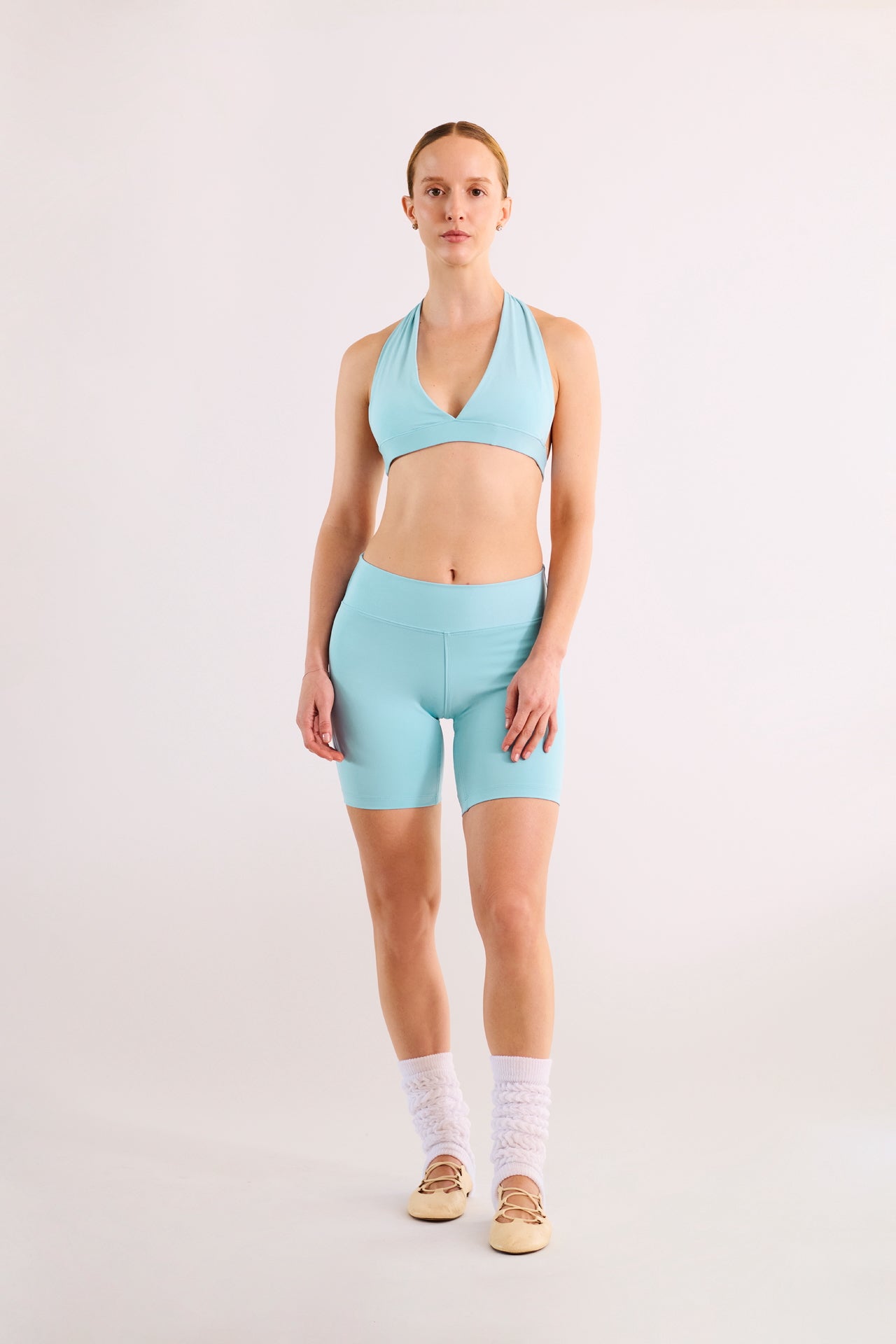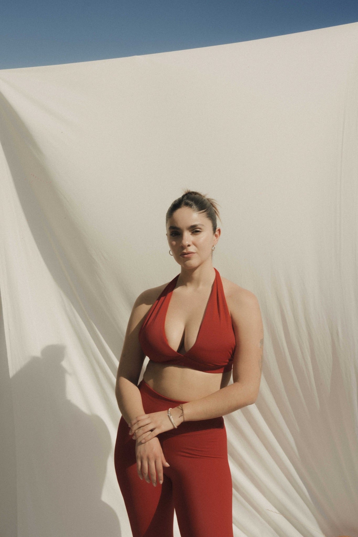 Top deportivo con escote en V pensado para moverte con total libertad. Banda de soporte bajo busto y copas removibles. Tela ultra suave que se adapta al cuerpo. Perfecto para yoga, entrenamiento funcional o look sporty chic.